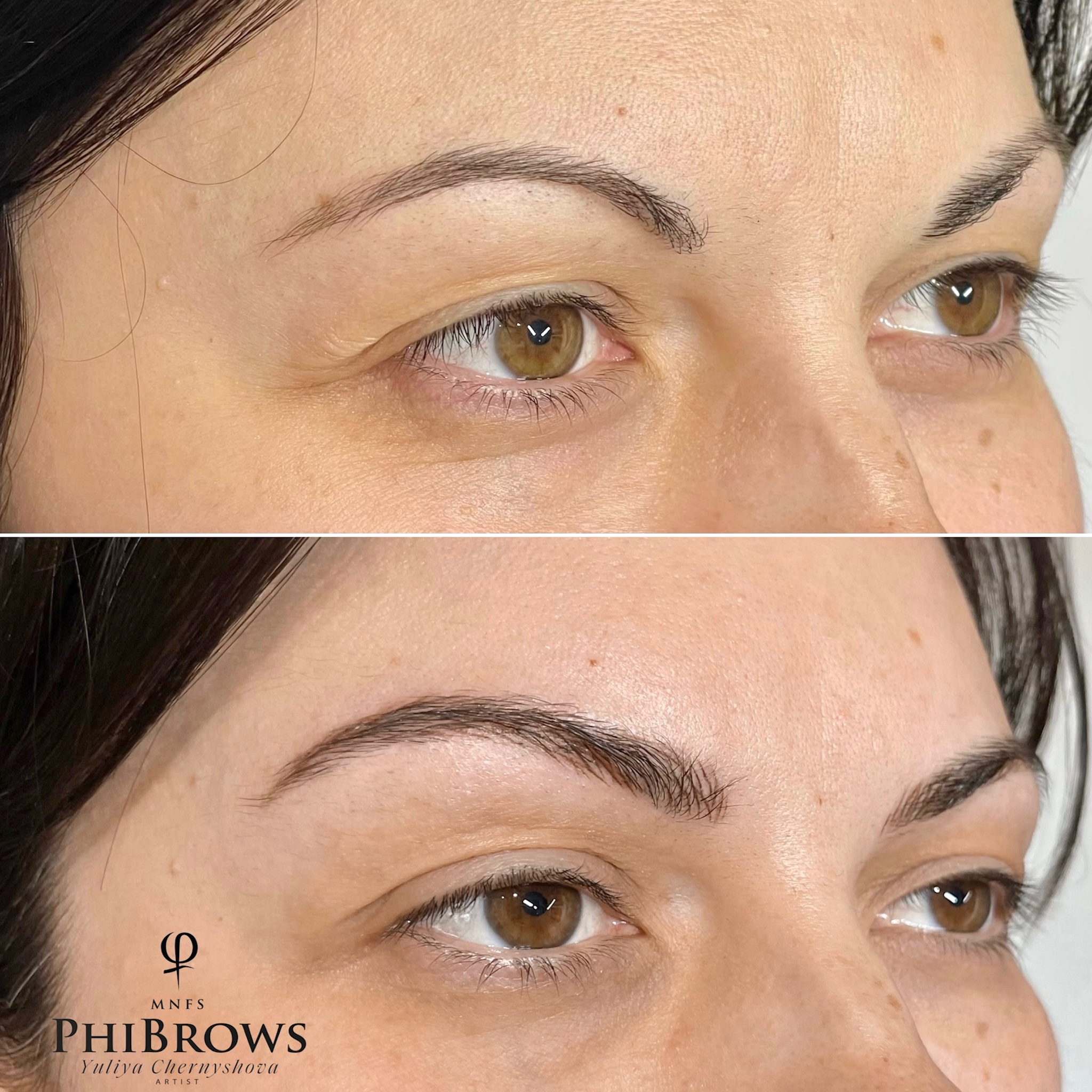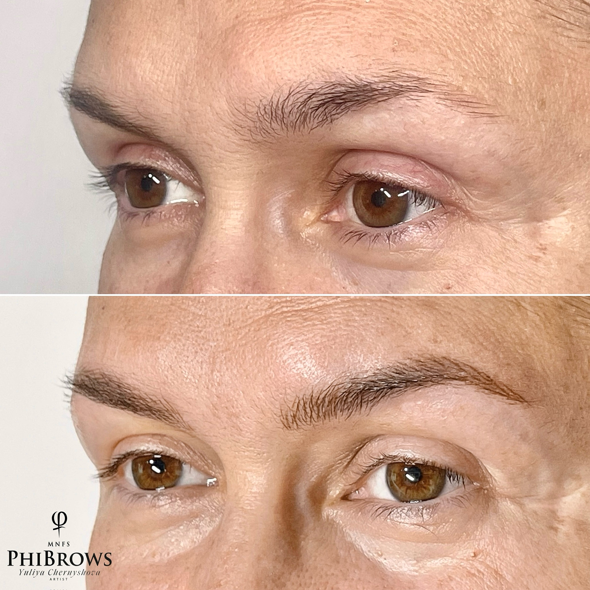This is not decorative makeup—it’s a true reconstruction of your eyebrows, designed to seamlessly blend with your own hair. The result? Beautiful, natural-looking brows that appear effortlessly your own.