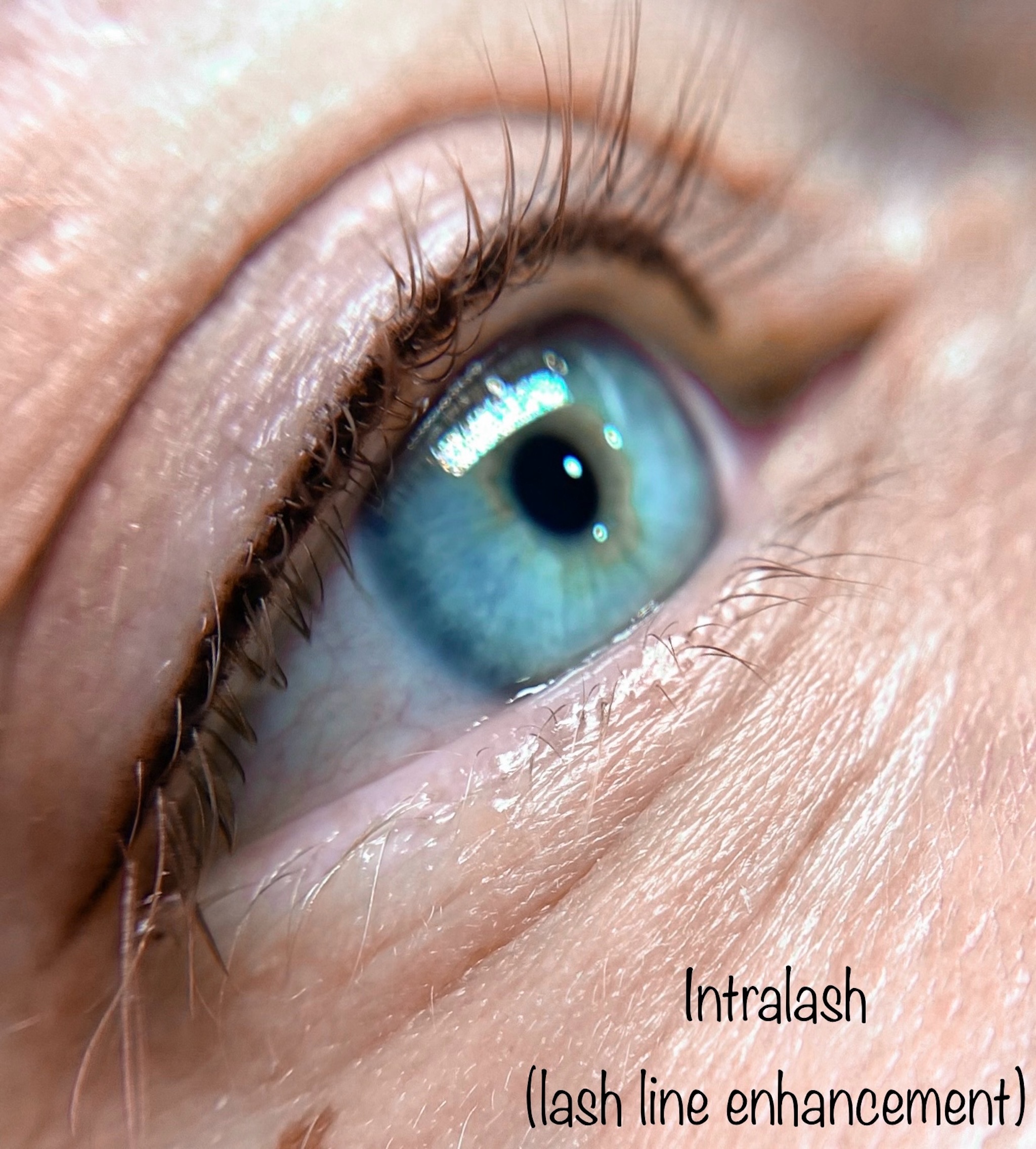 - Intralash (Lash Enhancement): A subtle technique where pigment is placed between the lashes to create the illusion of fuller, darker lashes—without a visible line.